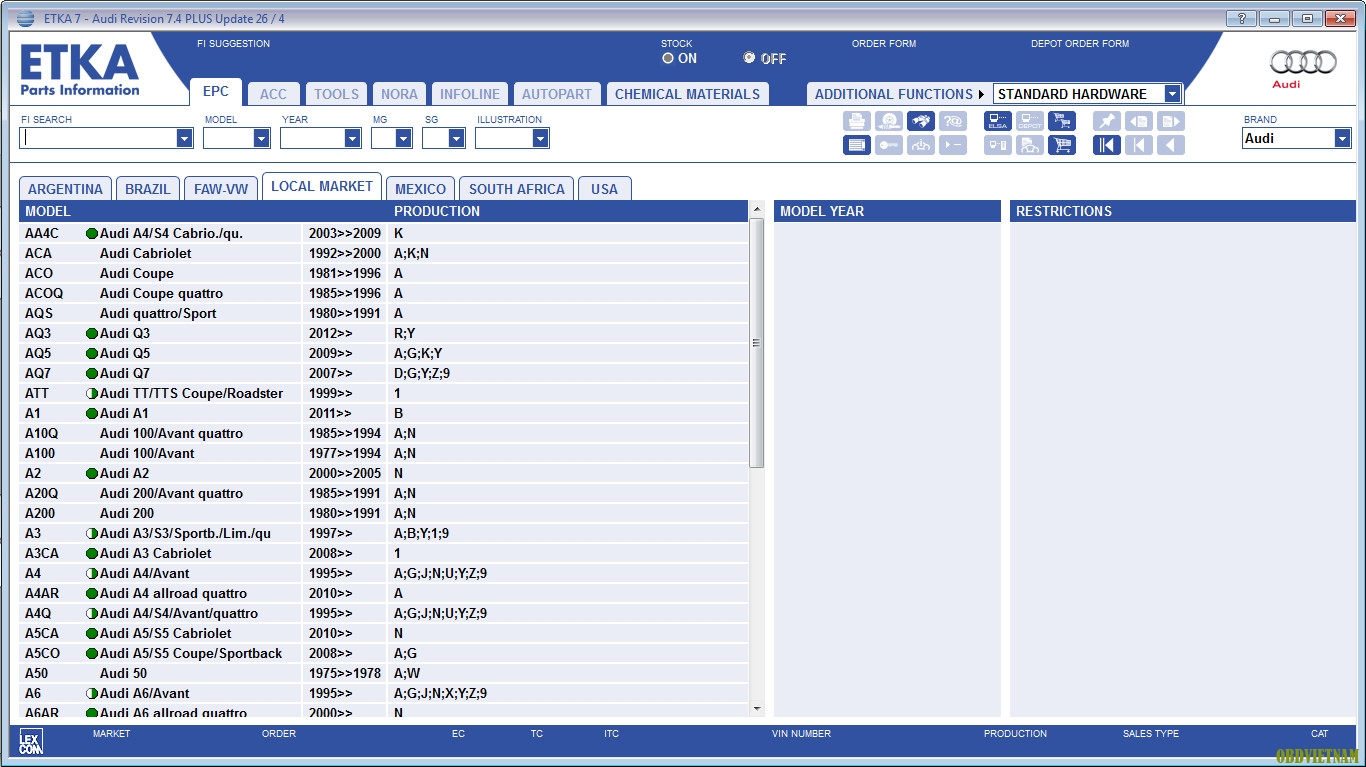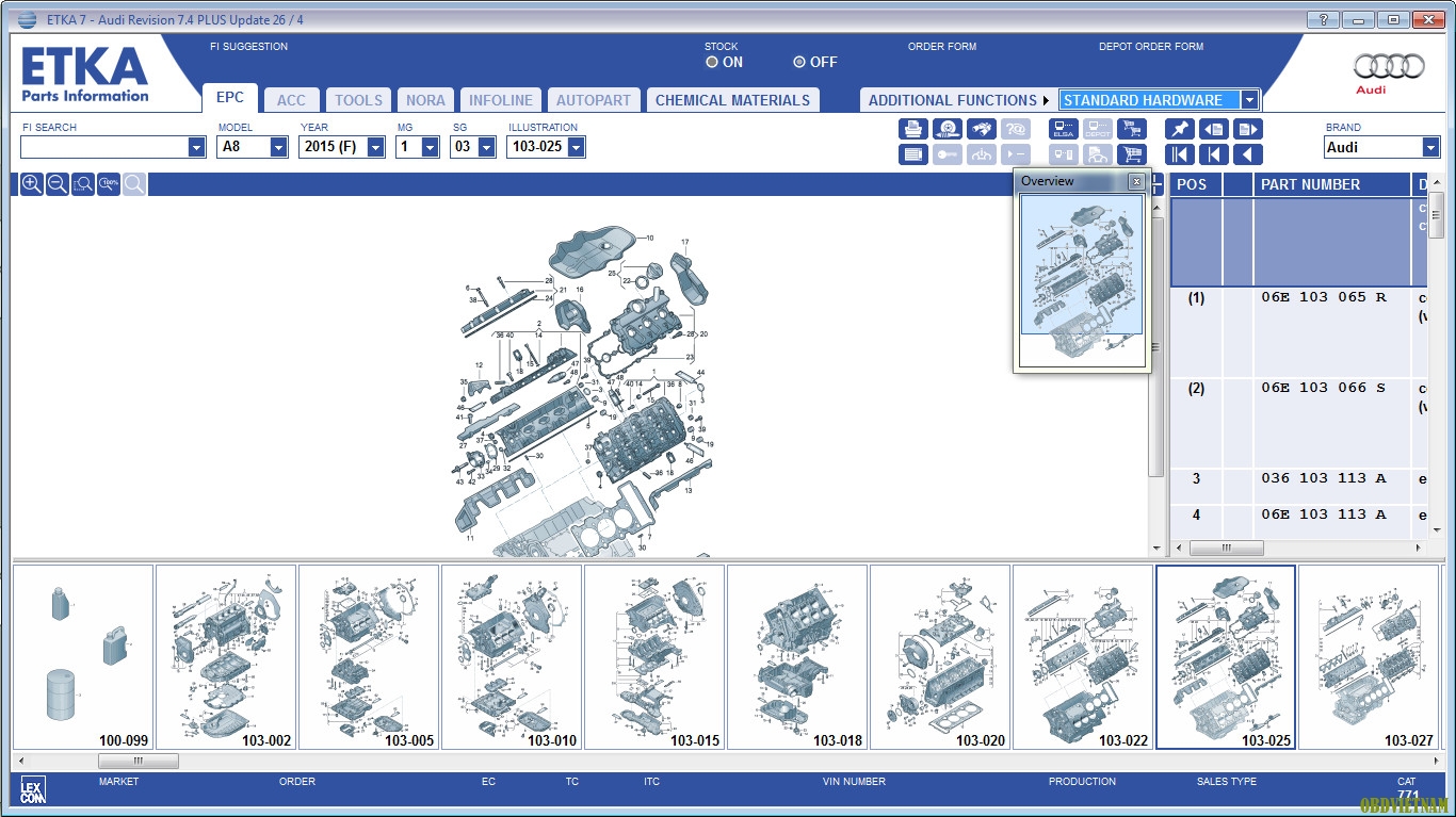 Phần mềm ETKA chứa đầy đủ thông tin về phụ tùng và phụ kiện cho xe ô tô của tập đoàn VAG (VW, Seat, Skoda, Audi), bao gồm cả xe tải nhỏ.